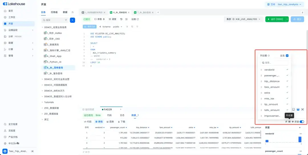 - 数据结果表格支持列设置并增加搜索功能,支持快速搜索过滤列信息。