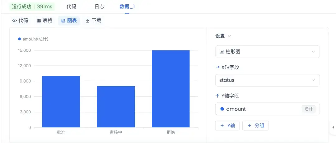 查询结果可视化图表能力:新增可视化图表能力,支持将查询结果自动转化为趋势图、柱形图等多种图表形式,可视化图表X轴新增分桶能力,特别针对时间日期类型,支持按年、月、日等时间单位进行灵活聚合,大幅提升数据洞察效率。可以直接在查询界面通过可视化图表传达逻辑关系,辅助业务决策分析。