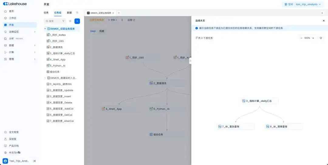 任务依赖可视化:在任务组DAG图中增加任务依赖展示,通过独立的界面可查看任务组内节点的全面血缘关系。