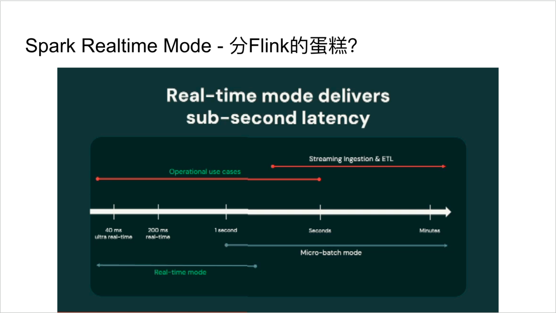 - 实时模式(Real-time Mode):Spark Structured Streaming传统上 采⽤微批处理(micro-batch)模式,与Flink等流处理引擎相⽐在延迟⽅⾯略显逊⾊。新的实时模式并⾮替代现有模式,⽽是在微批处理基础上,通过引入新的concurrent stage scheduler和non-blocking shuffle来提⾼实时性。这有望帮助⽤户整合流处理集群,降低运营成本。
