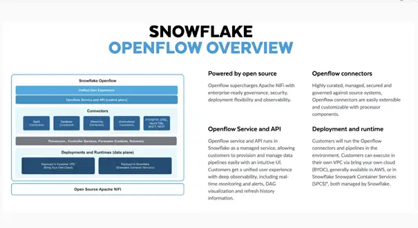 Snowflake 发布了全新的 Open Flow 数据集成平台。这是一款端到端的数据整合工具,覆盖了数据的采集、调度、处理、到下游应用的全流程。