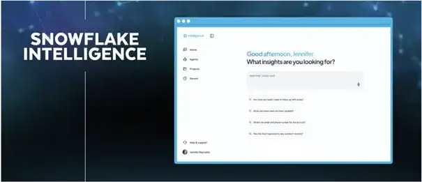 为了让用户以自然方式访问这些能力,Snowflake 提出了一个统一的交互层,称为Snowflake Intelligence。这个界面支持自然语言问询,通过 Agent 完成数据查询、图表生成、报告撰写等任务,最终为企业用户提供“Chat with your data”的体验。Snowflake 将其定位为企业智能协作的中枢系统,不再是单点工具,而是承载 AI 与人协同工作的操作入口。