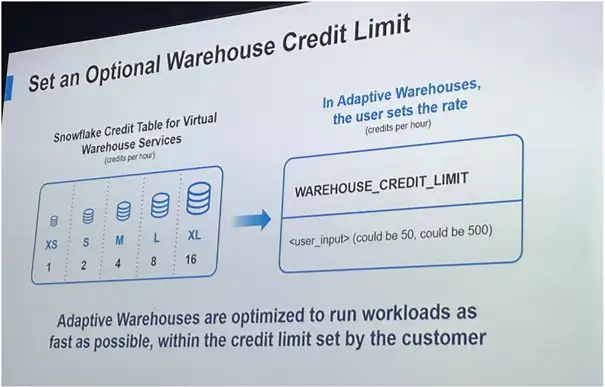 这不仅简化了配置流程,也提升了计算资源的利用效率。企业用户还可以设置 Credit 限制,以防止资源滥用。Adaptive Computing 标志着 Snowflake 正朝着更加自动化、Serverless 的方向迈进,为企业降低了使用门槛。