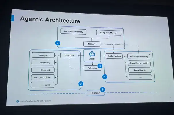 这些变革意味着,AI 不再只是“套件”或“工具集”的角色,而是已经深度嵌入企业开发流程的每一个节点,重塑了整个软件工程的技术范式与思维方式。Snowflake 所展示的“Architecting AI”框架,也为开发者和架构师提供了清晰的参考方向:如何基于数据构建可持续、可解释、可共享的 Agent 系统。