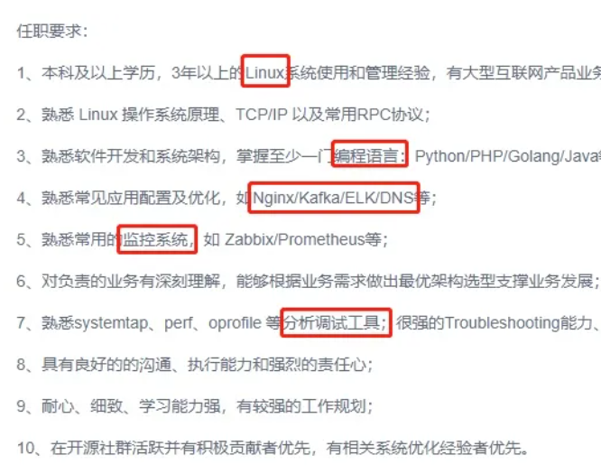 综合来看,与我上面说到的SRE技能图谱中大部分还是重合的,这些重合的地方就是SRE必备知识,是核心,你可以不会其他的,但这些重合的技能必须要掌握。