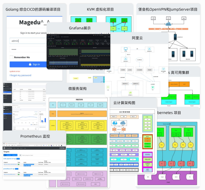 马哥教育每门课的大型项目都有很多,而且是真正意义上的大型项目,不是像其他机构把小的举例都充数在项目实战里,下图是某课程的部分项目实战展示。