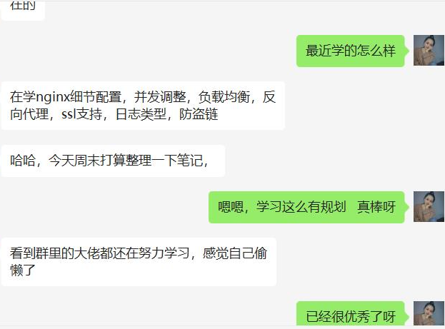 面对教育教学,马哥教育的老师一直认真负责,连与家长的沟通都能做到事无巨细、尽心尽力,更别说与学生的各项督促、沟通、服务了,是否是在用心做教育这件事,通过老师与家长与学员的聊天一看便知。