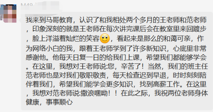 依然是口说无凭,上图为证。当然马哥教育在IT行业里也深耕14年了,培养的学员差不多遍布大江南北,很多老师如:马哥、张sir、王老师都是行业内的知名讲师,无论是学员还是行业内的权威人物都给予他们高度的好评。
