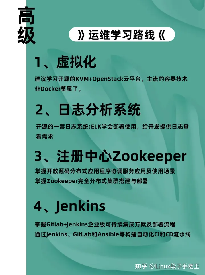 学习 Linux 而更多的是向系统层面、运维工程师方向发展,其岗位主要包括:云计算系统工程师、大数据运维工程师、运维开发工程师、数据库运维工程师等等,其职位都是 Linux 运维工程师的进阶。