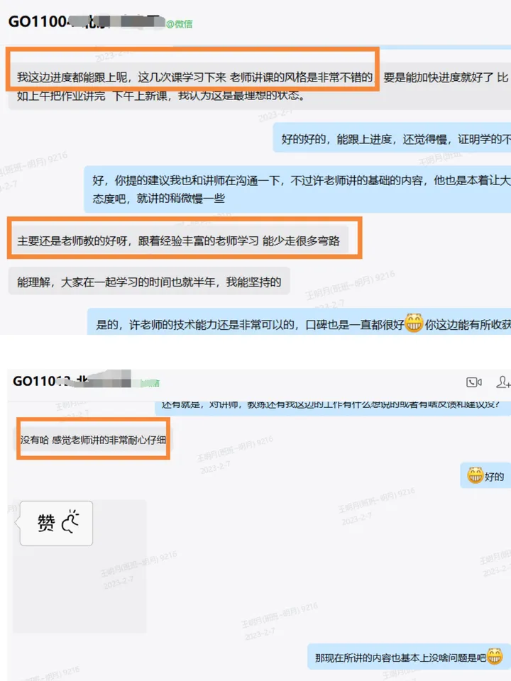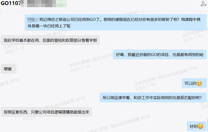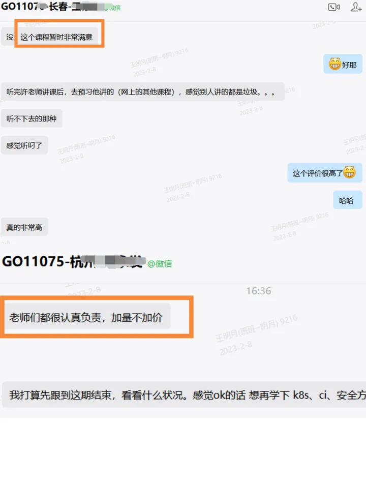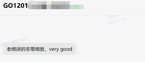我们的Go课程由许老师和喻老师两位老师主讲,两位老师都拥有10年+以上的开发从业经验,都曾在知名企业任职,学员都给予了一致好评。
