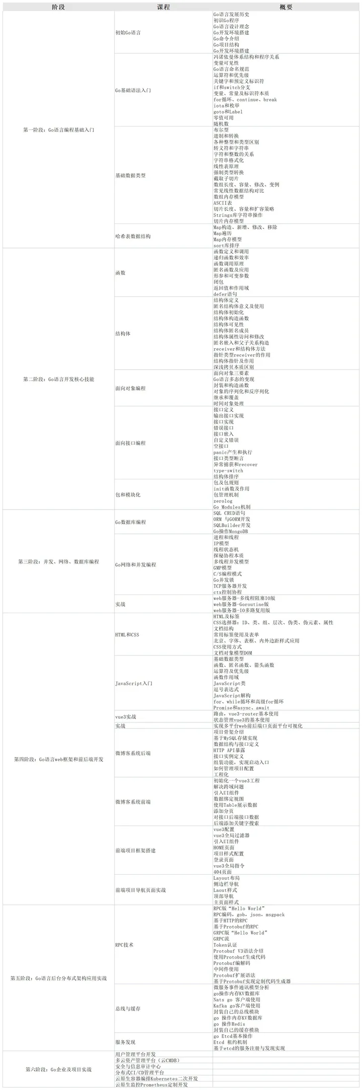 课程覆盖现在最主流的Go开发全栈技术+微服务体系,教学内容都是非常实用的干货。5-6个月的课程,包括前后端开发以及分布式架构,涵盖当今最主流的核心技术全体系,并且还会结合目前主流K8S后端开发,覆盖Go开发工程师所具备能力的方方面面。帮助学员实现5-6个月从Go零基础到入门,再到高级进阶,最后实现就业上岗以及职场晋升的蜕变。
