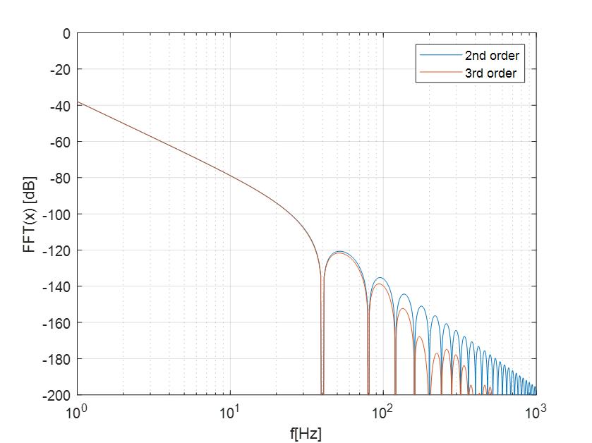 将二阶和三阶的轨迹规划的FFT做对比如下图