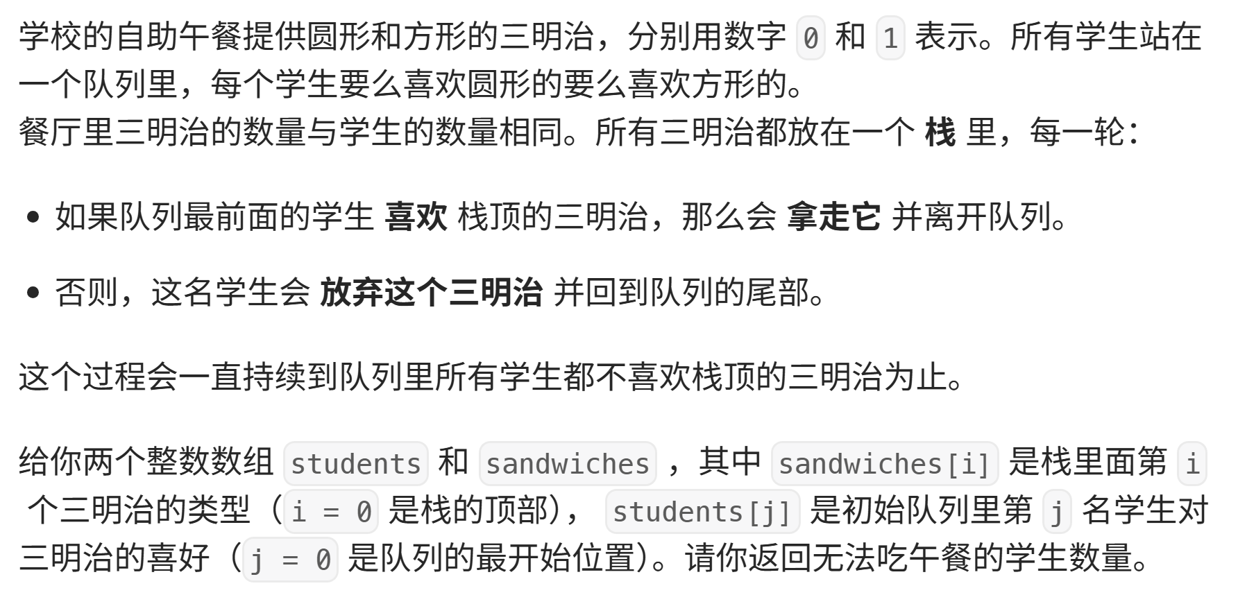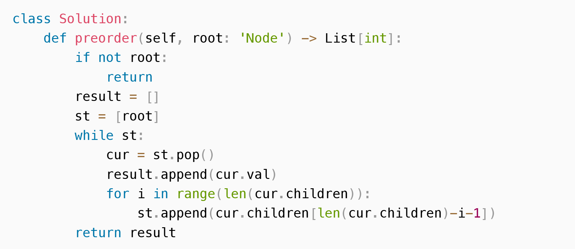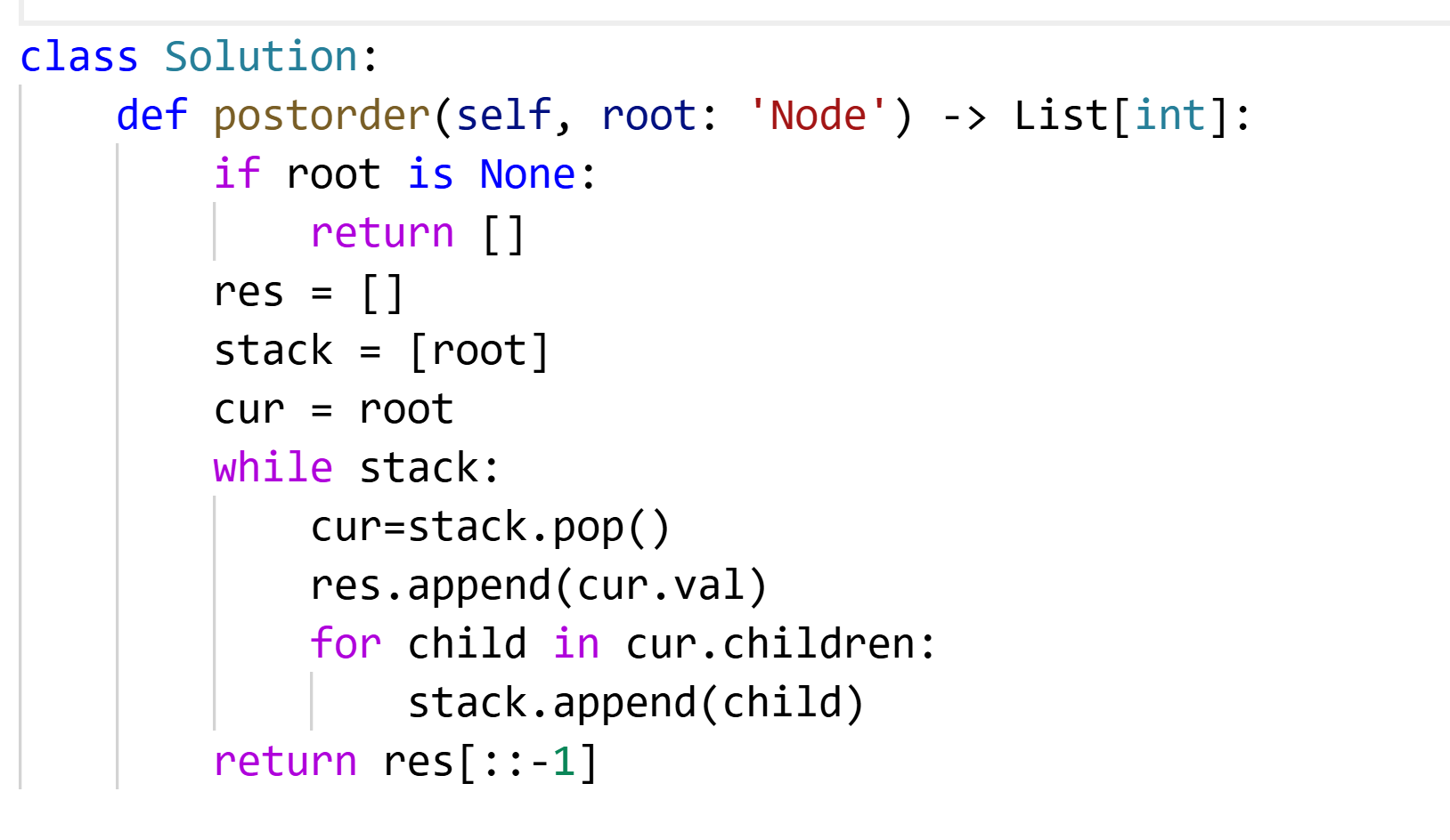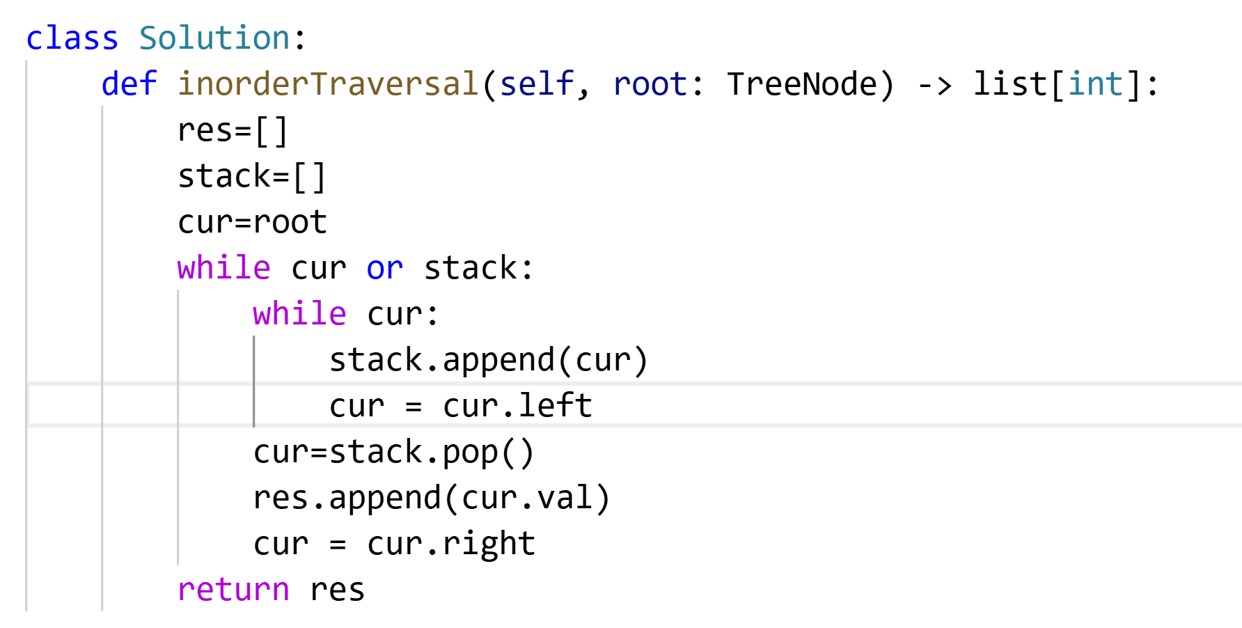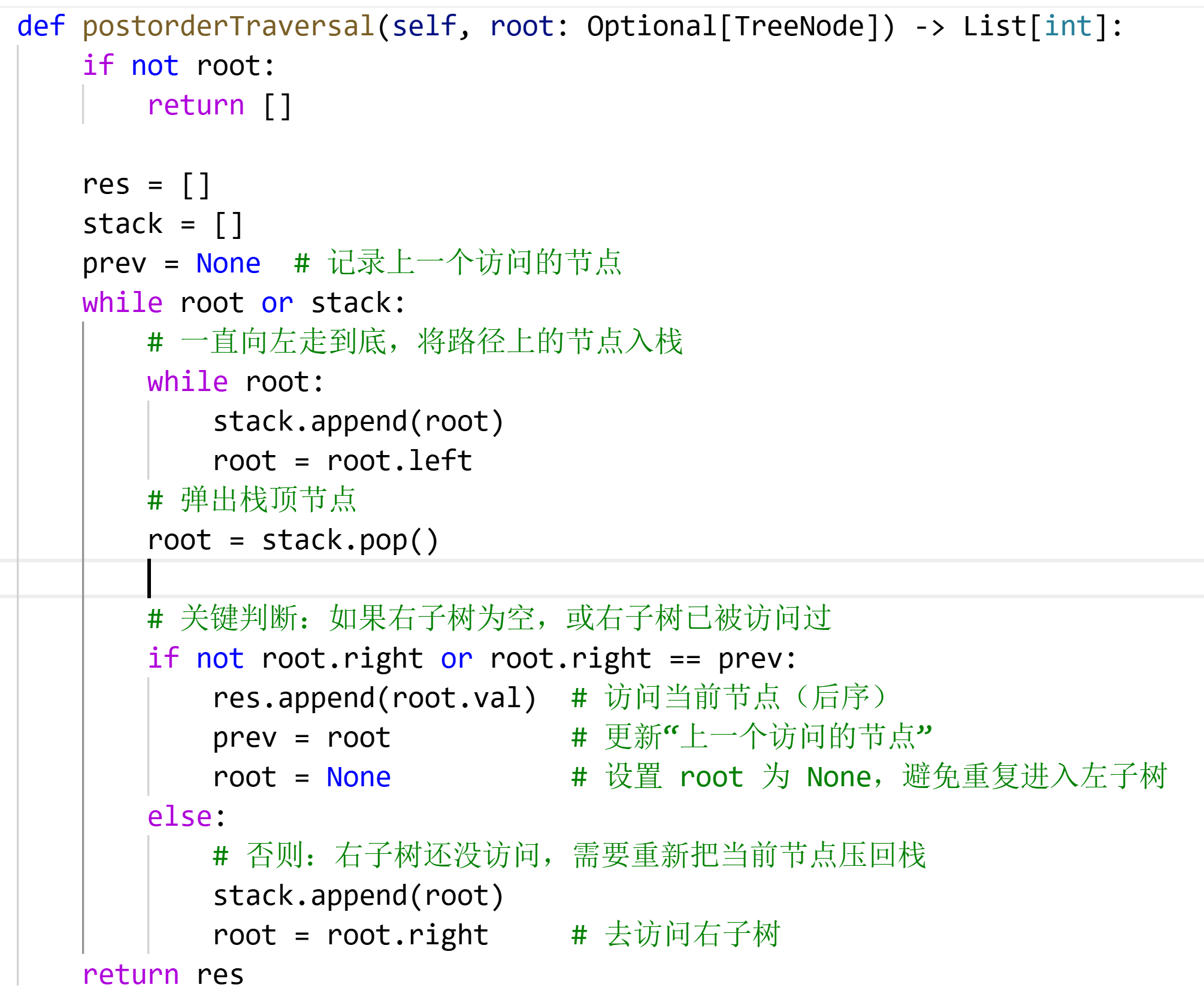 多看几道题学习一下。 21. 合并两个有序链表 203. 移除链表元素 206. 反转链表 234. 回文链表 94. 二叉树的中序遍历 方法一 递归法 方法二 迭代法 显式维护栈 后序遍历的栈代码: N叉树的前序遍历 N叉树的后序遍历 1700. 无法吃午餐的学生数量