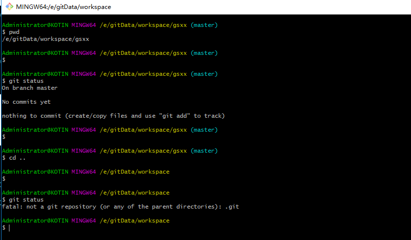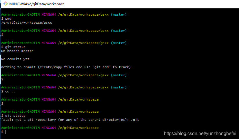 4>git status 查看状态,需要在项目目录下才可以使用: