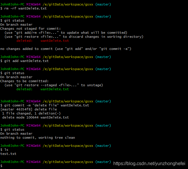 前提:创建另外一个文件wantDelete.txt,然后提交到本地库