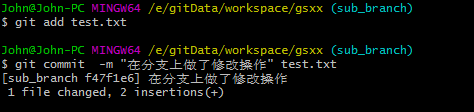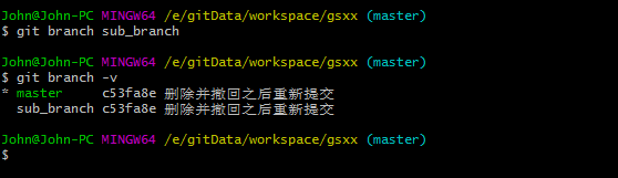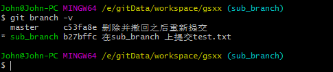 分支创建:git branch sub_branch,此时两个分支版本号相同。