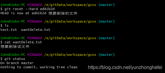 git commit 操作之后,仍然删除了本地的文件,此时有两种可以进行的操作: