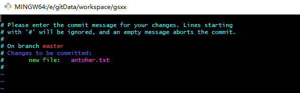 从新提交到暂存区,并提交到本地库,中间会自动弹出输入界面,需要输入此次提交注释信息: