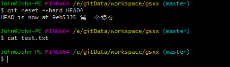 2>使用 HEAD^进行相对于当前HEAD指针位置进行相对移动:
