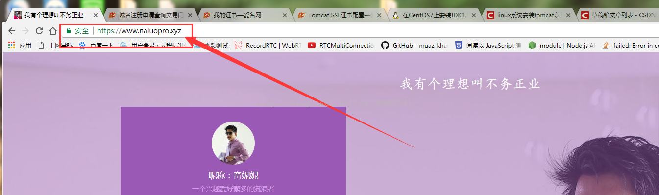 现在越来越多的网站都开始用安全链接了,在国外的话,如果不是一个安全链接,用户很大程度上会拒绝使用,所有安全链接是未来的趋势,楼主第一次配安全证书的时候,刚刚大学毕业,是完完全全小白一个,后来工作中需要配置,自己也各种查资料,最终花了几天,在Tomcat、nodejs、Nginx上都配好了安全链接。