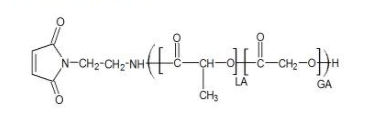 poly(L-lactide-co-glycolide)-Maleimide 聚乳酸-羟基乙酸共聚物直接链接马来酰亚胺是一种常用的药物封装可生物降解聚合物药物增溶和药,可以用于制备胶束或者囊泡等新型靶向材料