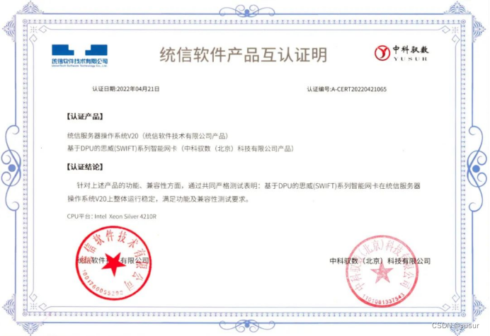 近日,中科驭数基于DPU的思威(SWIFT)系列智能网卡产品与统信服务器操作系统V20软件产品完成适配认证。针对产品的功能、兼容性方面,通过共同严格测试表明:基于DPU的思威(SWIFT)系列智能网卡在统信服务器操作系统V20上整体运行稳定,满足功能及兼容性测试要求。