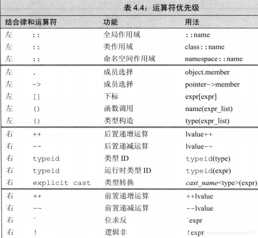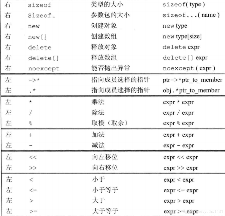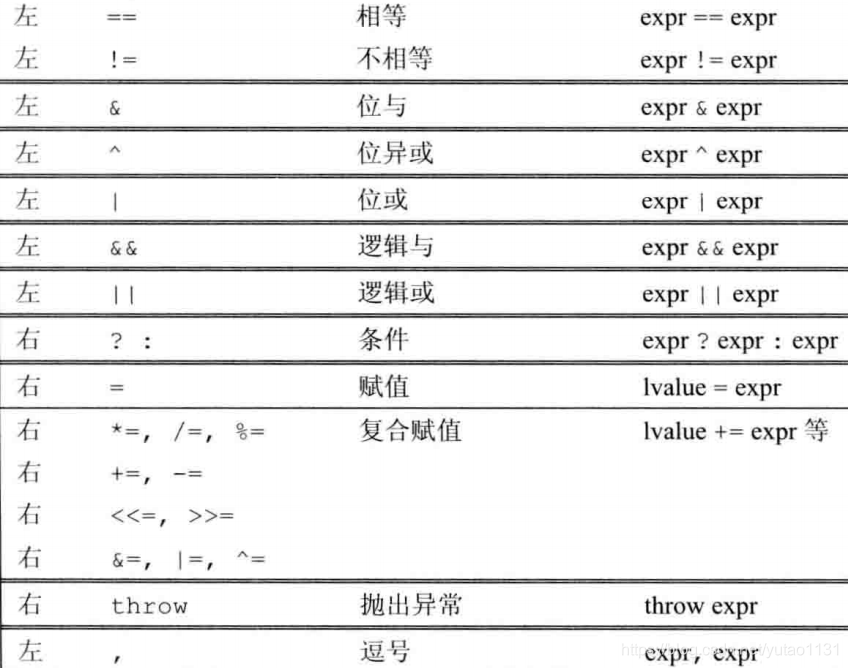 很多运算符没有执行顺序, 如 int i= f1()* f2(), 不清楚 究竟是先执行的f1还是f2, 同样的还有<<, 尽管vs2019 中 执行int i=0; cout<<i<<" "<< ++i << endl; 将输出2, 但是不同的编译器给出的结果可能不同, 如此代码存在风险. 有明确执行顺序的运算符有 &&, ||,?:, 和逗号.