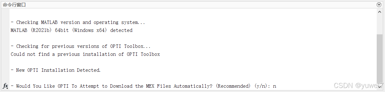 运行之后就在安装了,接着会弹出来第一个问题:要不要下载mex文件?我选的是N,不用。