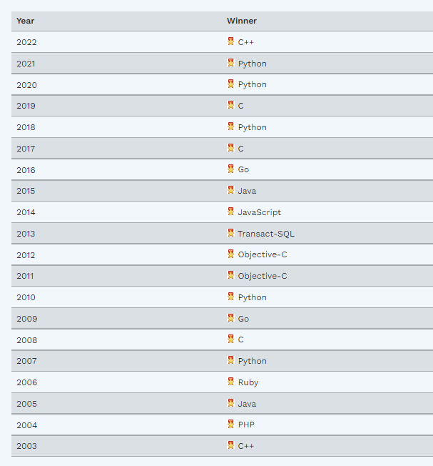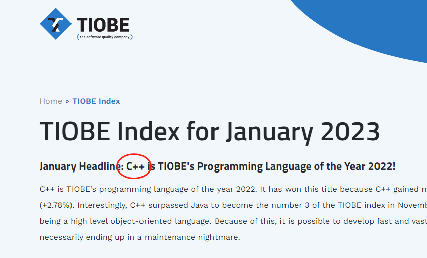 今天看到一个IT圈儿的消息:TIOBE发布了2022年度编程语言——C++!