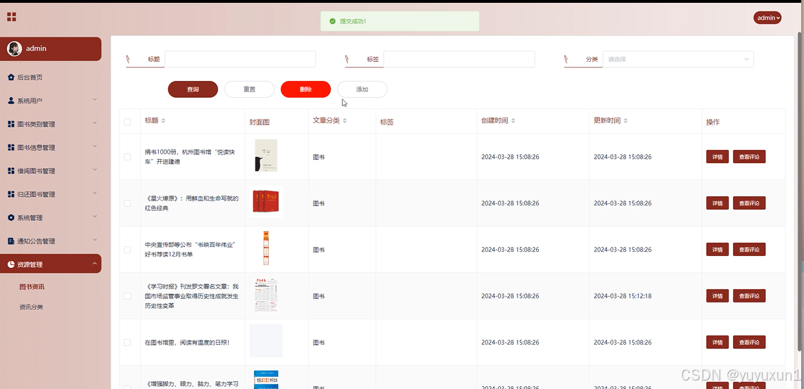 图书资讯: 管理发布的图书资讯信息,包括图书推荐、阅读指南等。