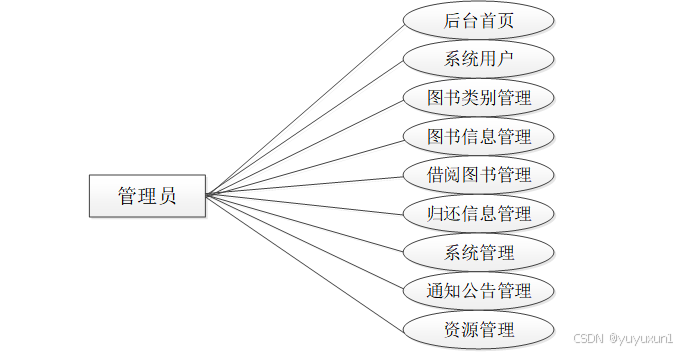 web后台管理上的管理员是维护整个图书管理系统中所有数据信息的。管理员角色用例如图3-4所示。