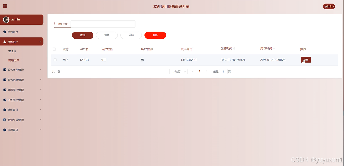 当管理员点击“系统用户”时,可管理管理员、普通用户,同时可对系统用户进行增删改查,界面如下图所示。