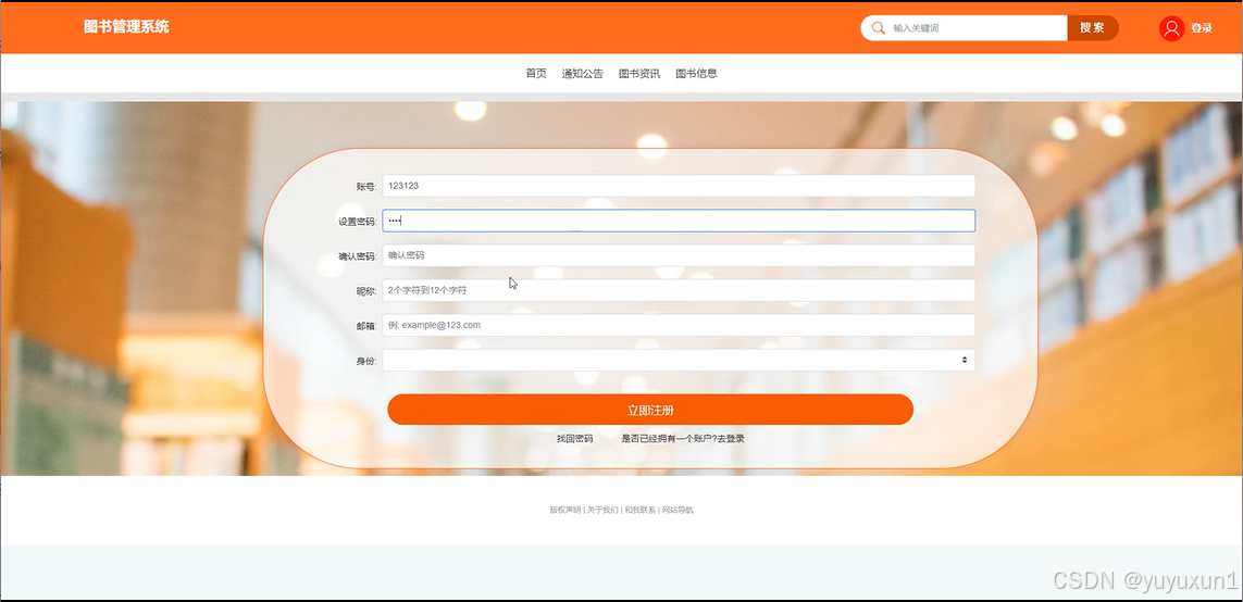 通知公告管理: 管理发布的通知公告信息,如图书馆活动、系统更新等。