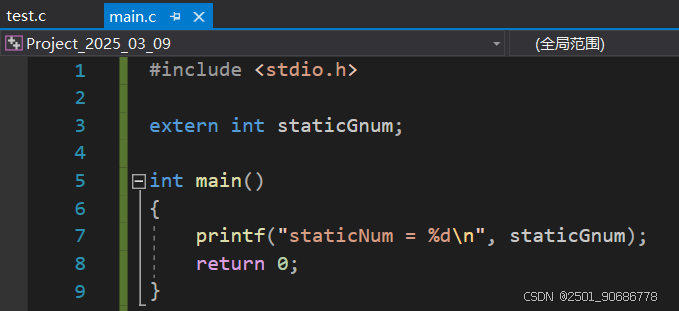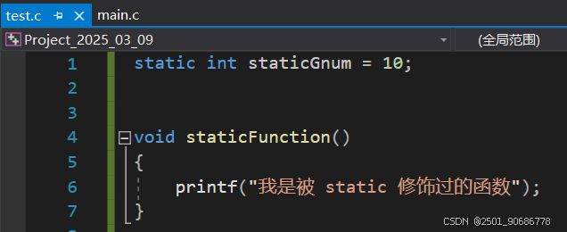 我们看下面这两段来自不同源文件的两段代码其中一个文件中定义了static修饰的全局变量: