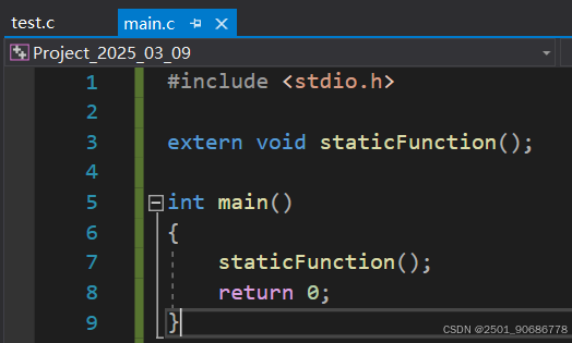 我们看下面这两段来自不同源文件的两段代码其中一个文件中定义了static修饰的函数: