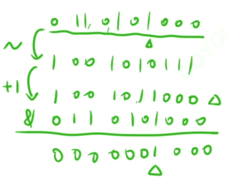 让二进制序列去借位, 如果没有1就一直借位, 直到遇上1 , 这样让借位的地方, 左边全部不变, 右边全部相反