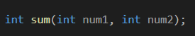 C语言中的函数呢, 有函数的声明, 函数的定义, 还有最终函数的调用, 函数本身又有函数的返回值, 函数的名称, 以及函数的参数列表. 我们以一个求和的函数为例