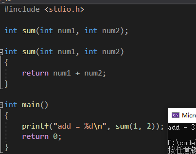 这里要注意的是: 在函数的声明后面是有 ; 的