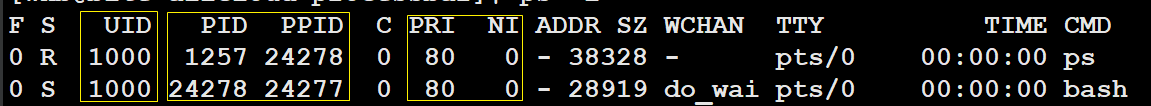 在linux或者unix系统中,⽤ps ‒l命令则会类似输出以下⼏个内容: