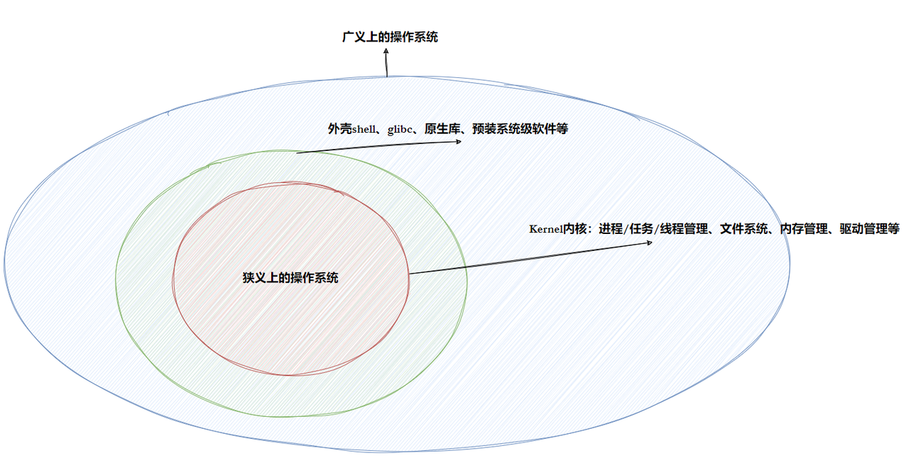任何计算机系统都包含⼀个基本的程序集合,称为操作系统(OS)。笼统的理解,操作系统包括: