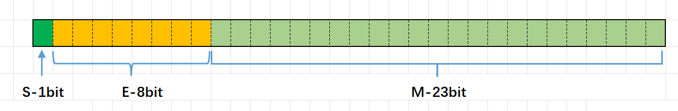 对于32位的浮点数,最⾼的1位存储符号位S,接着的8位存储指数E,剩下的23位存储有效数字M