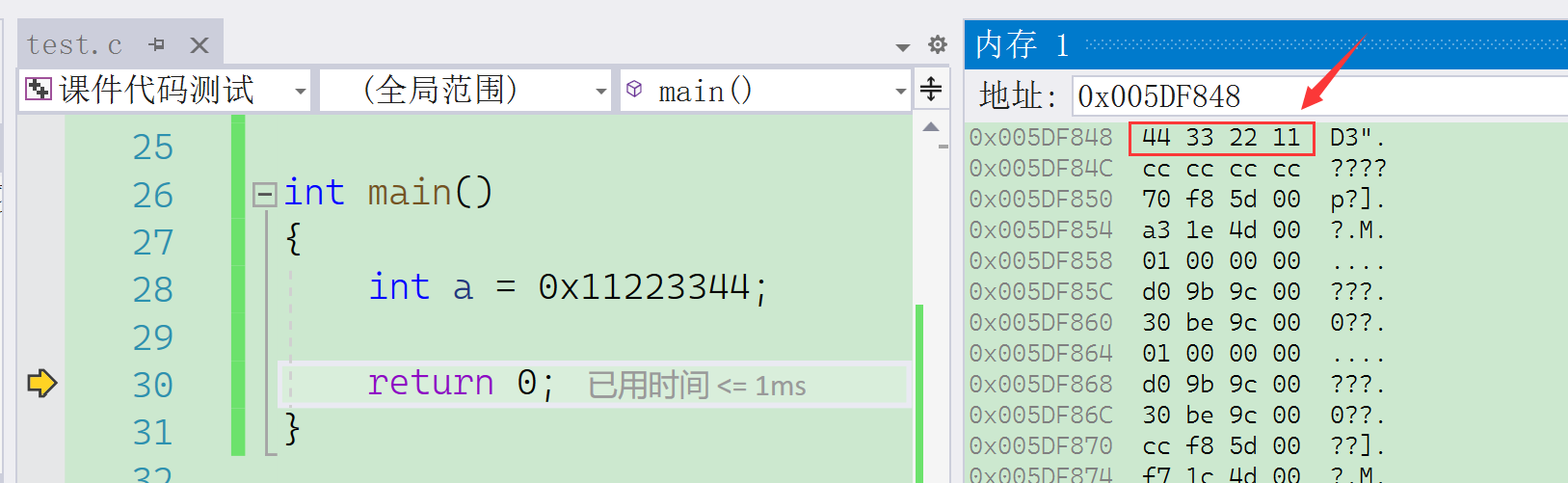 调试的时候,我们可以看到在a中的 0x11223344 这个数字是按照字节为单位,倒着存储的。这是为什么呢?