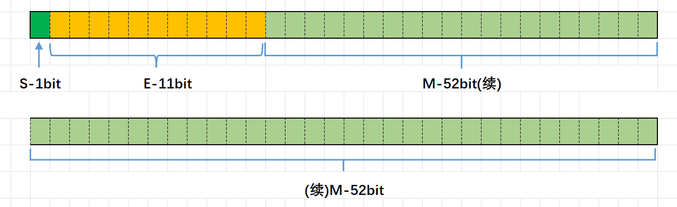 对于64位的浮点数,最⾼的1位存储符号位S,接着的11位存储指数E,剩下的52位存储有效数字M