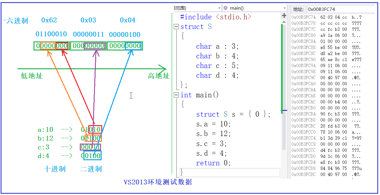 位段的⼏个成员共有同⼀个字节,这样有些成员的起始位置并不是某个字节的起始位置,那么这些位置处是没有地址的。内存中每个字节分配⼀个地址,⼀个字节内部的bit位是没有地址的。