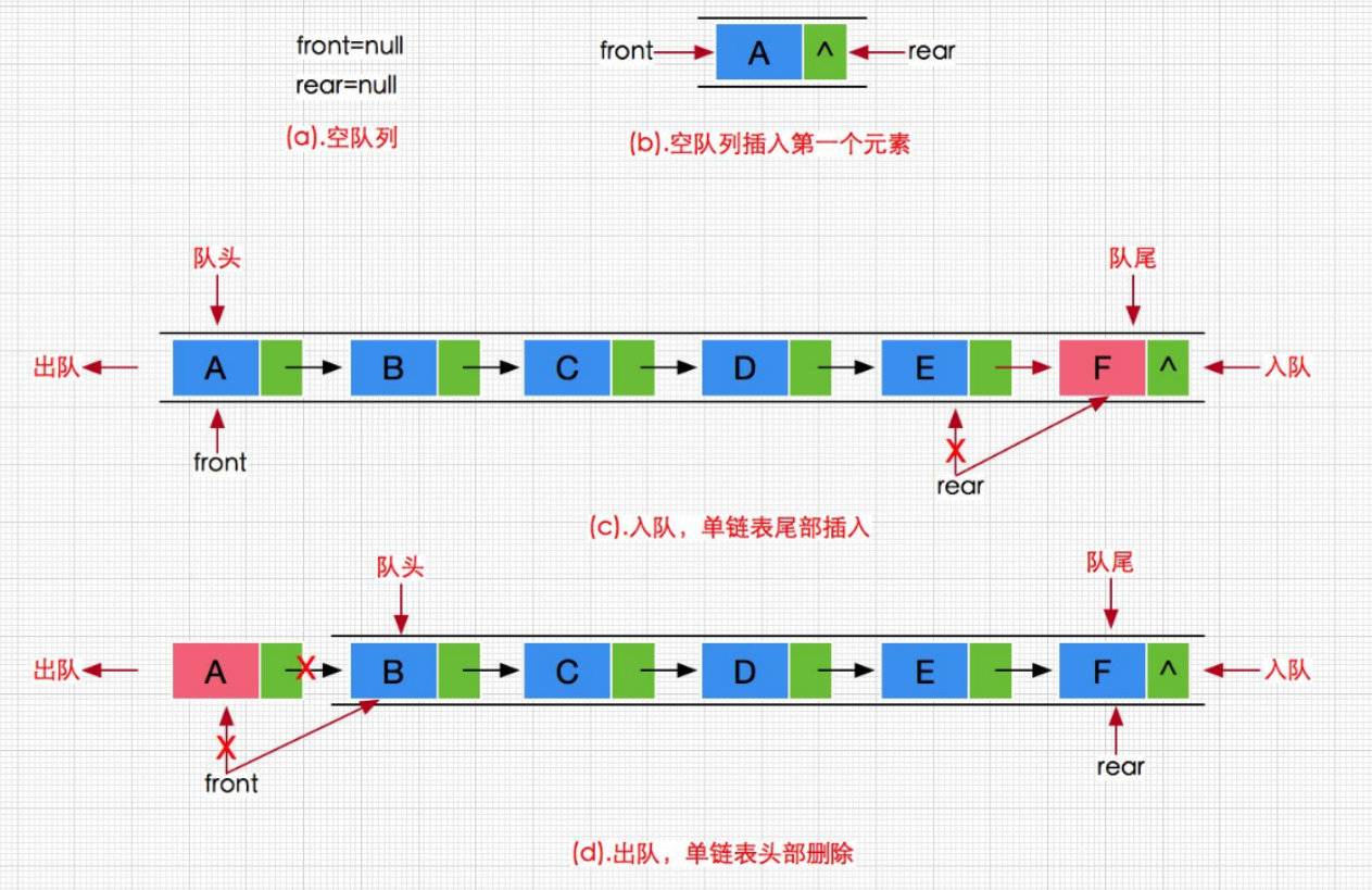 队列也可以数组和链表的结构实现,使用链表的结构实现更优一些,因为如果使用数组的结构,出队列在数组头上出数据,效率会比较低。