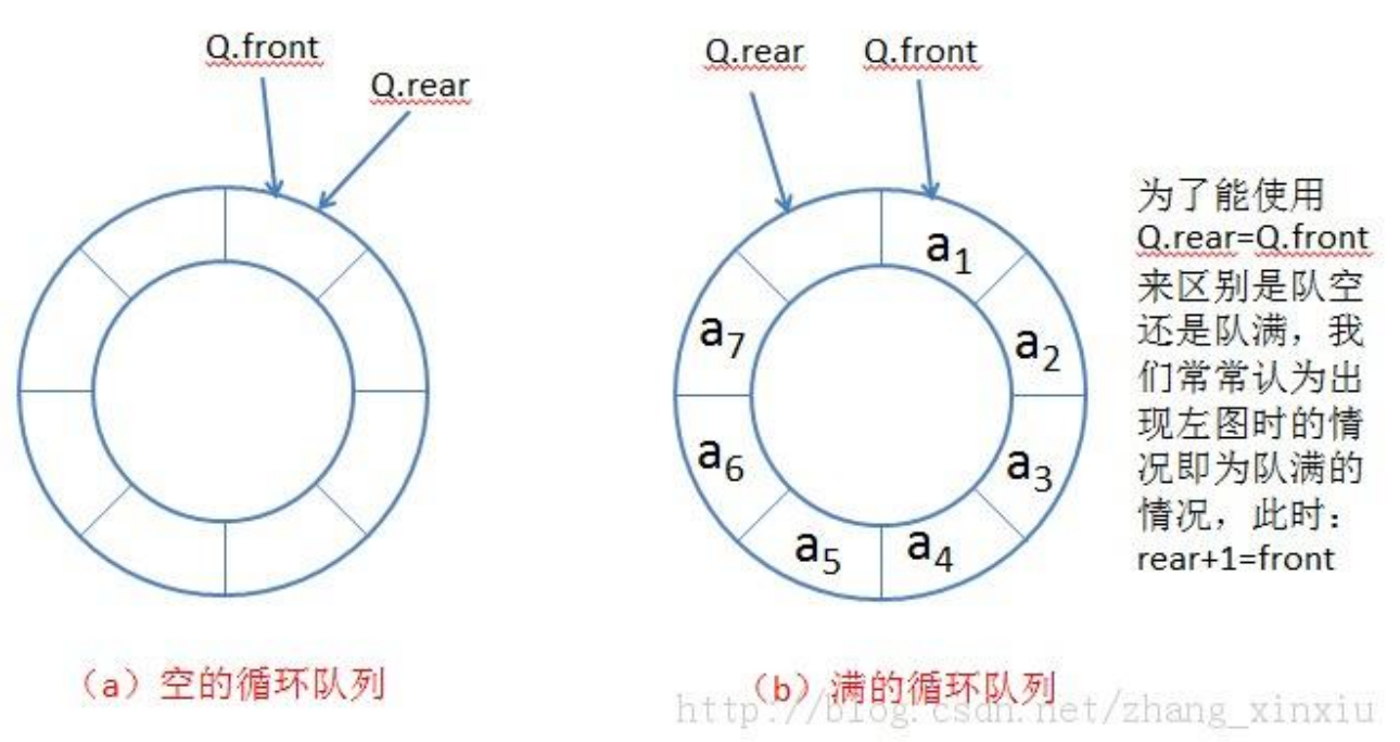 另外扩展了解一下,实际中我们有时还会使用一种队列叫循环队列。如操作系统课程讲解生产者消费者模型时可以就会使用循环队列。环形队列可以使用数组实现,也可以使用循环链表实现。