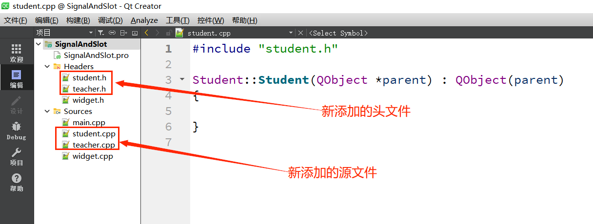 在 widget.h 中实例化 "⽼师类对象" 和 "学⽣类对象";