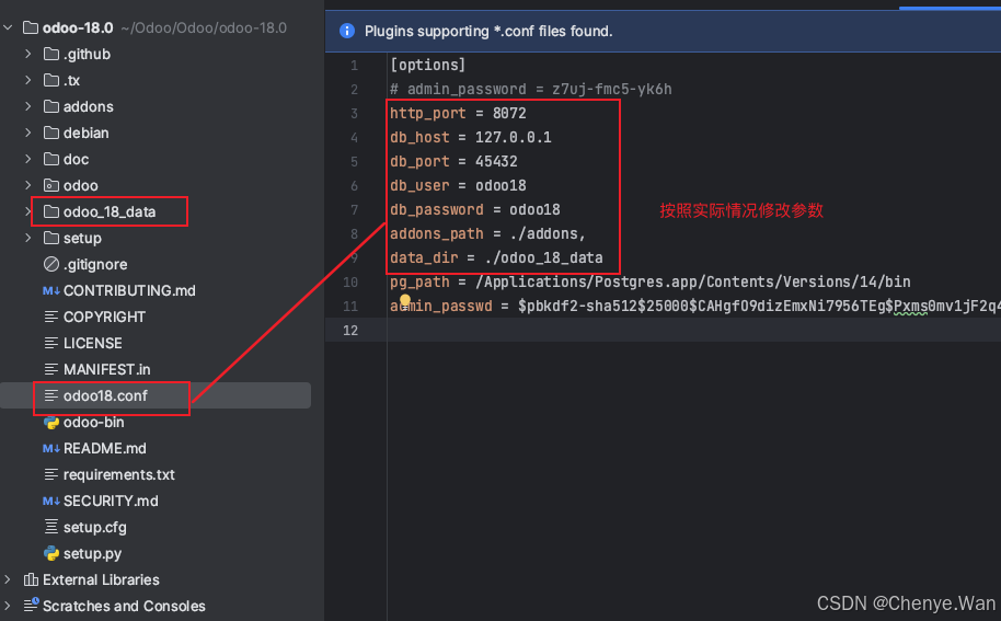 5、新建一个odoo18.conf在项目的根目录下面,内容: