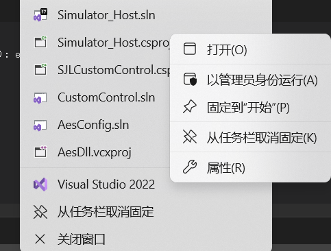 以管理员身份运行VS。鼠标右击打开这个菜单。