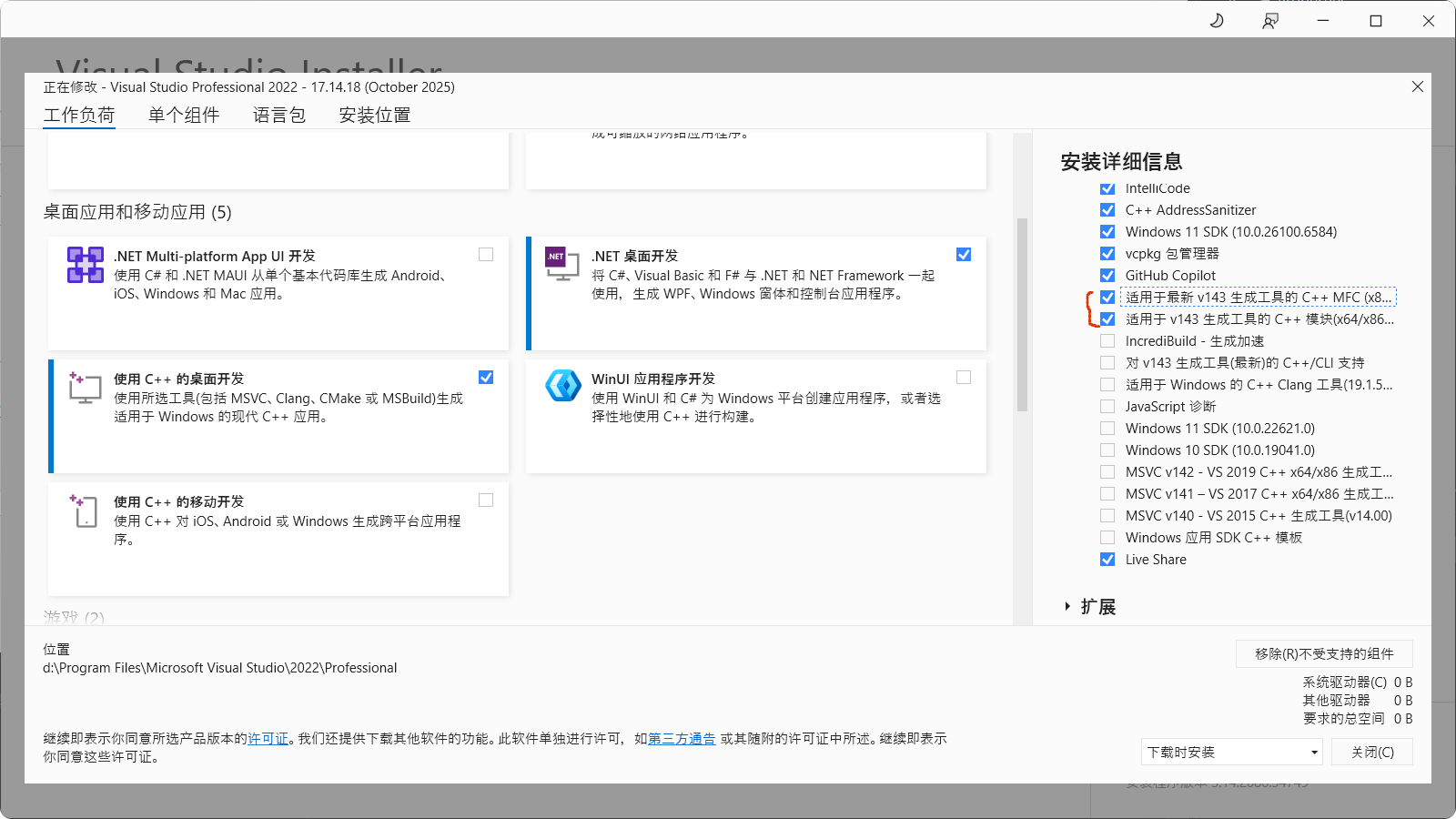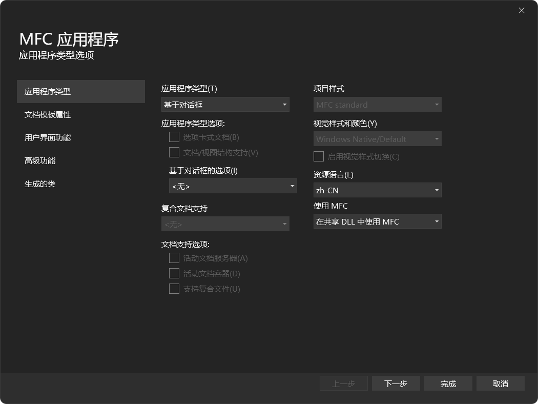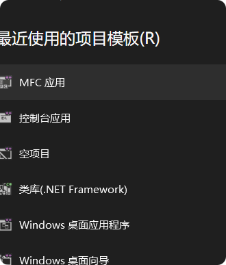创建MFC项目,如果没有看到MFC选项,则要安装。